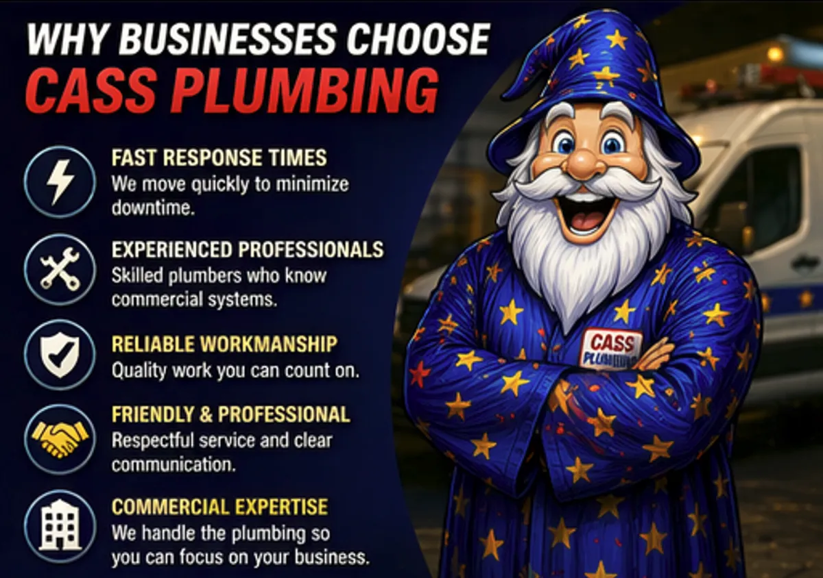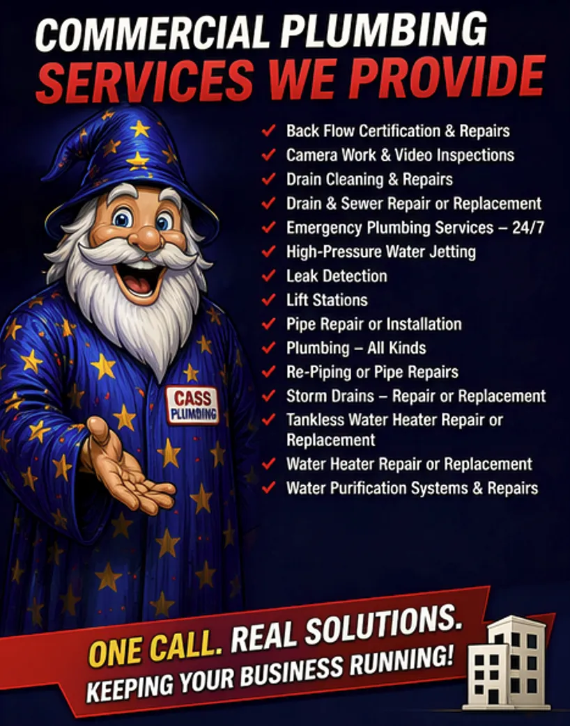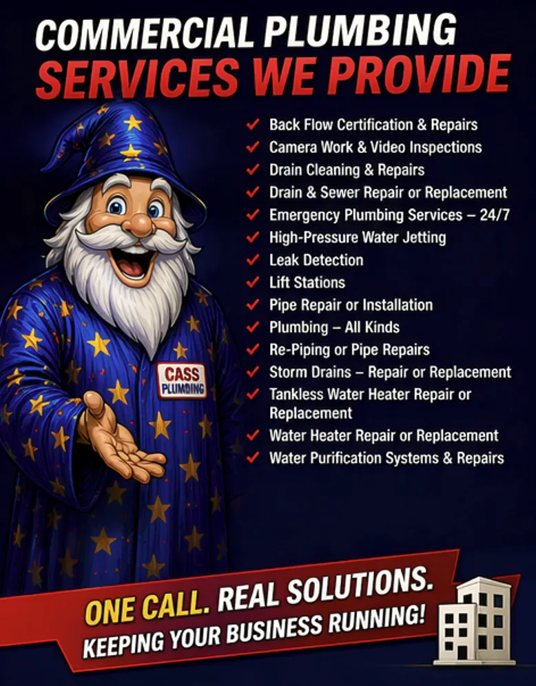 If your business, facility, or commercial property needs dependable plumbing service, Cass Plumbing is ready to help.