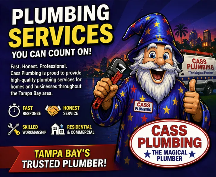 When you need a dependable plumber in the Tampa Bay area, Cass Plumbing is ready to help. We proudly provide high-quality plumbing services for both residential and commercial customers, with a strong commitment to honest service, skilled workmanship, and fast response times.
