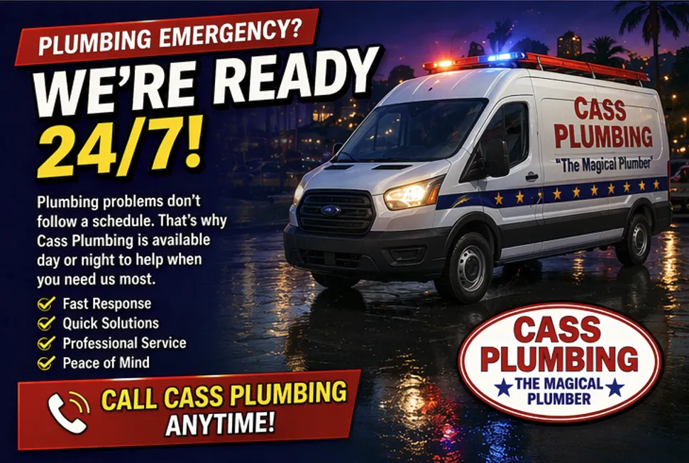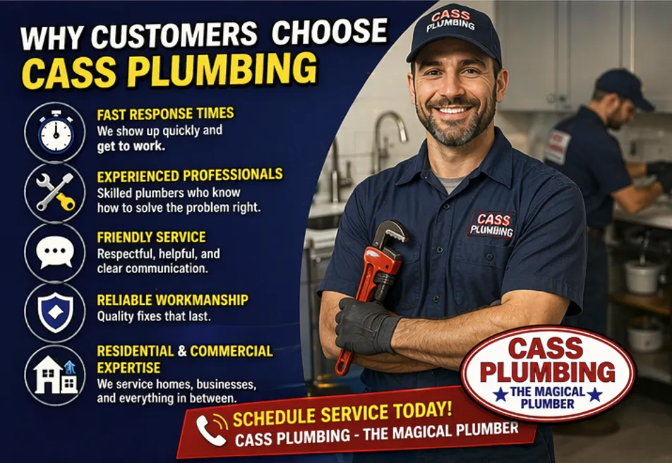 Whether you are dealing with a leak, a clogged drain, a broken water heater, or a plumbing emergency that cannot wait, you can count on Cass Plumbing to get the job done right.